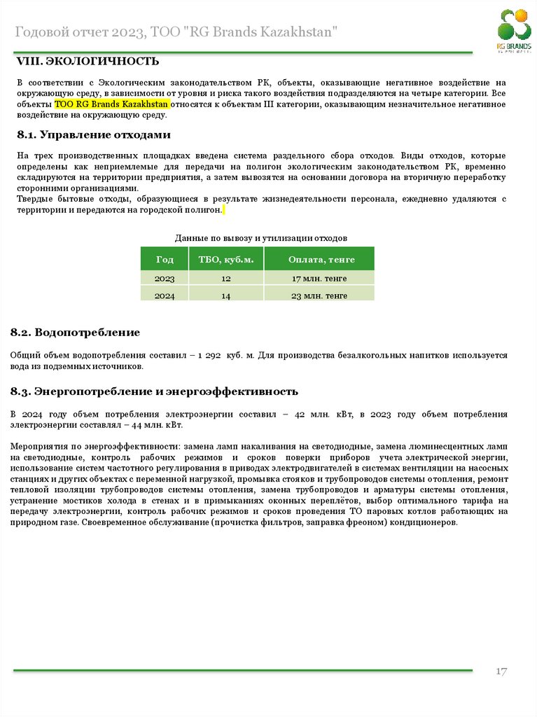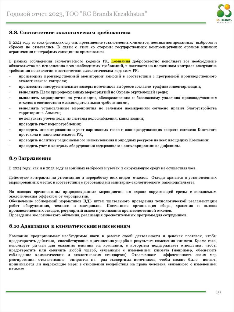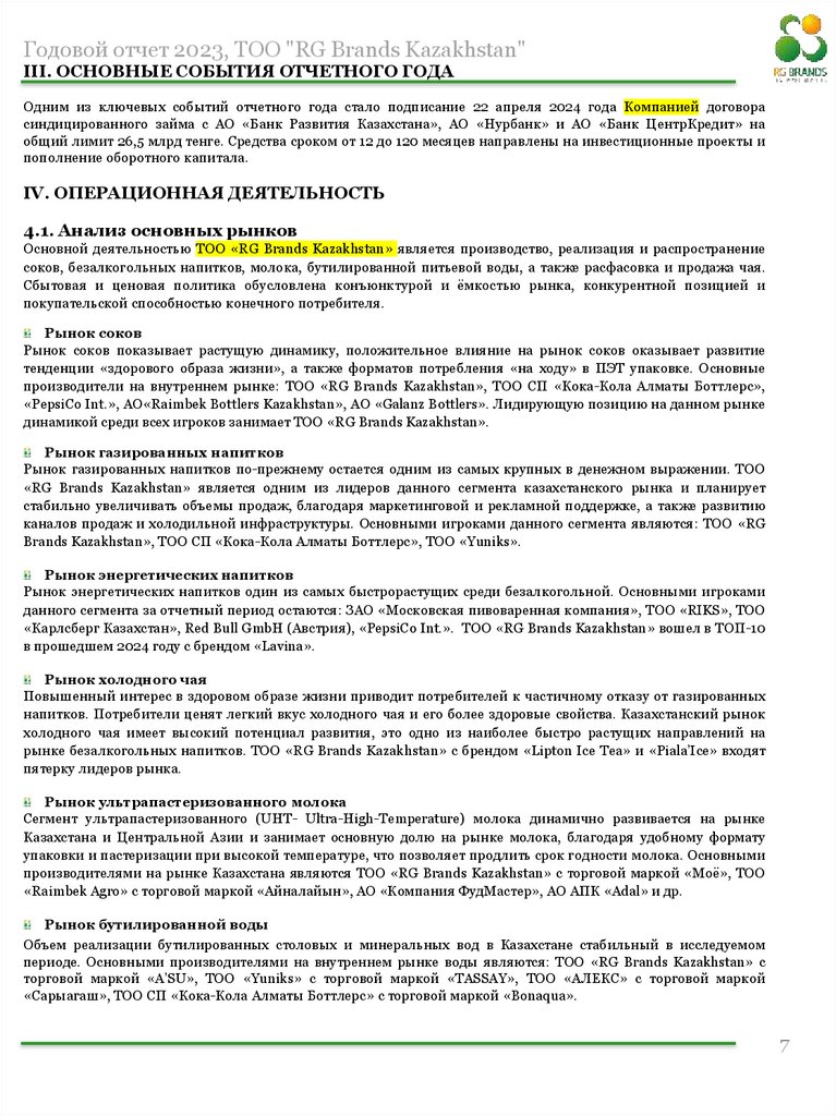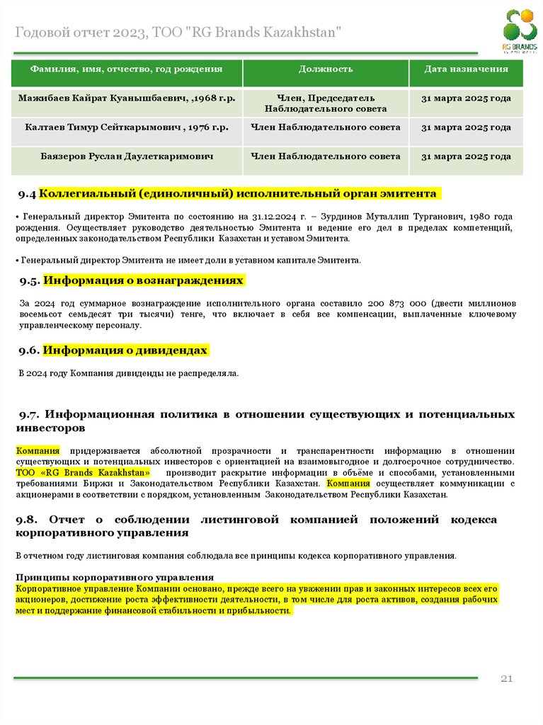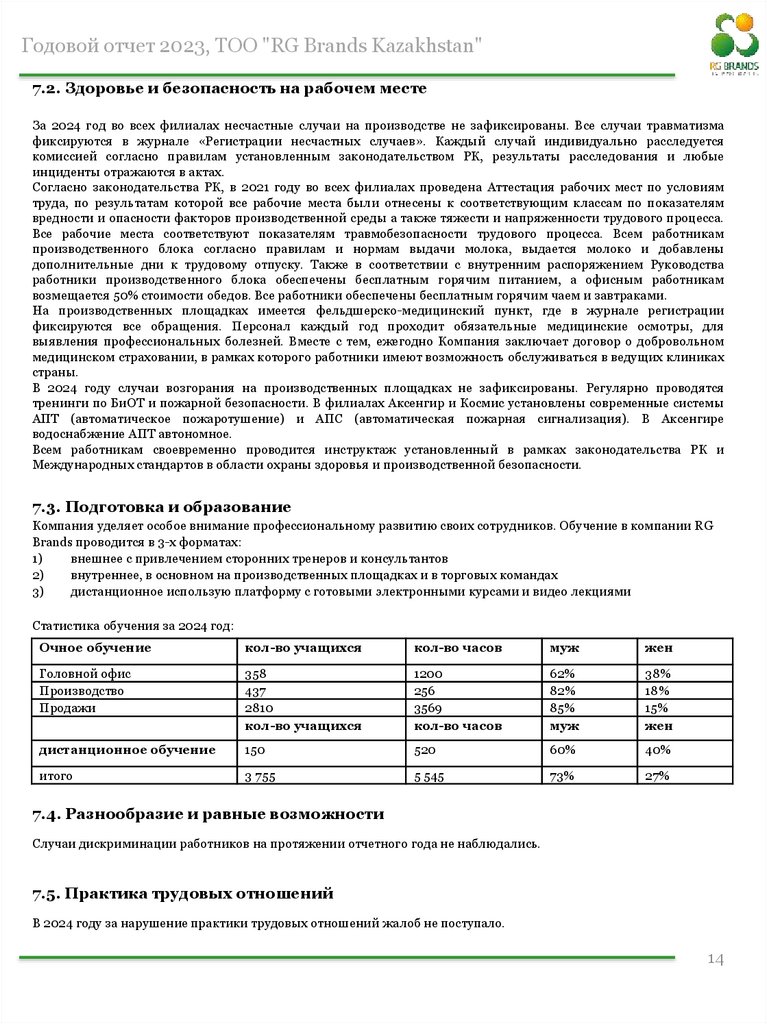Годовой отчет 2023, ТОО "RG Brands Kazakhstan"Годовой отчет