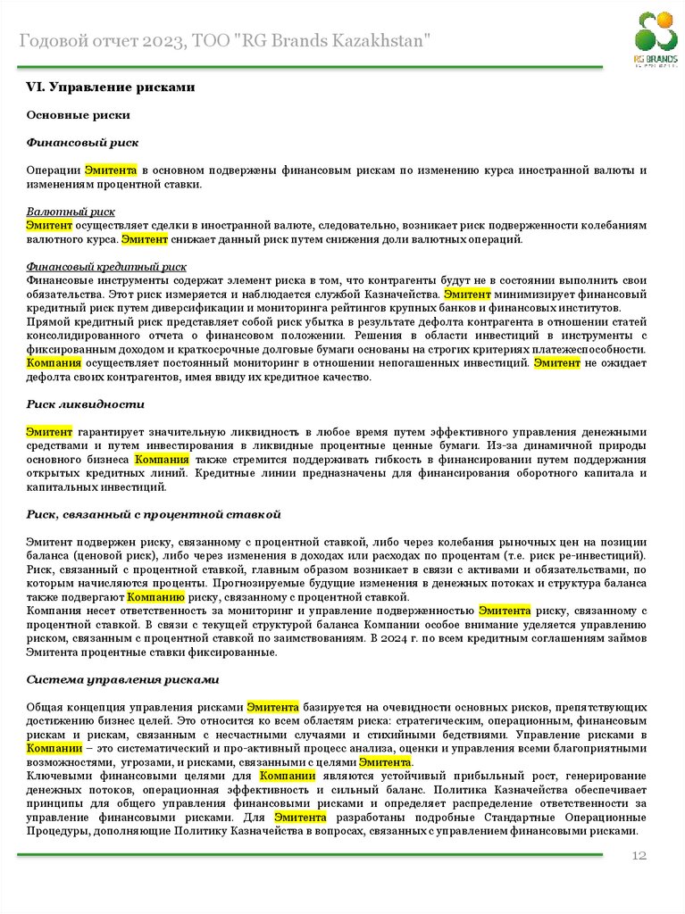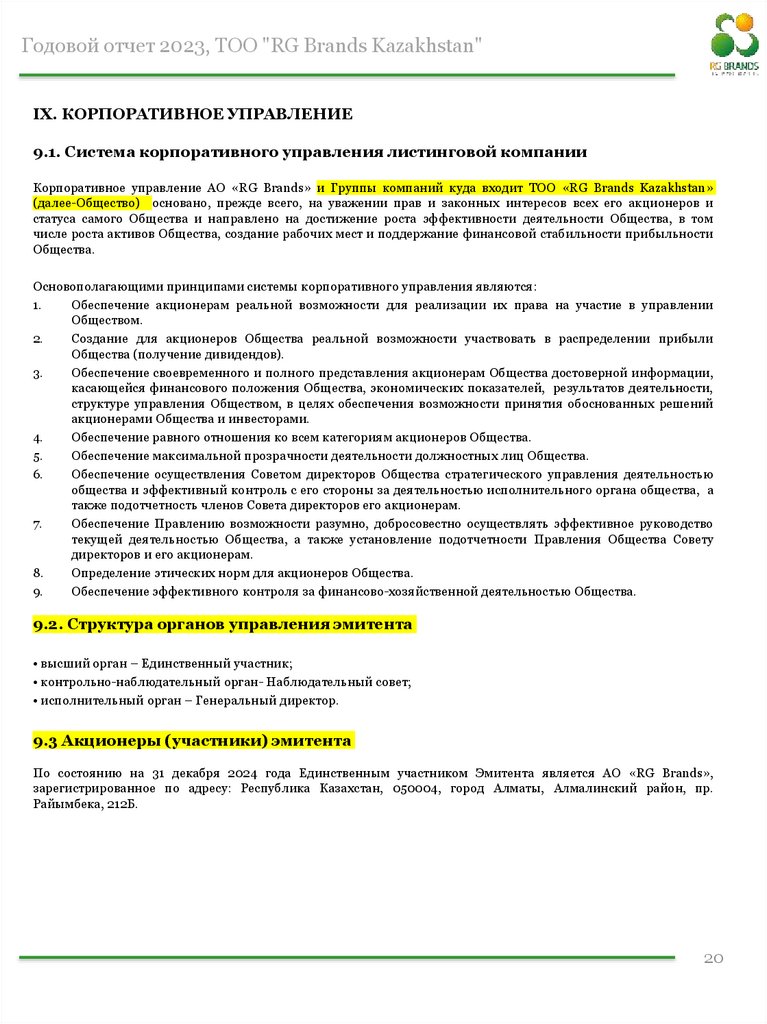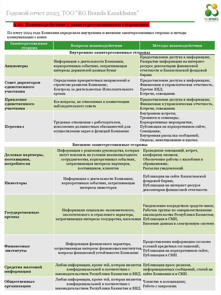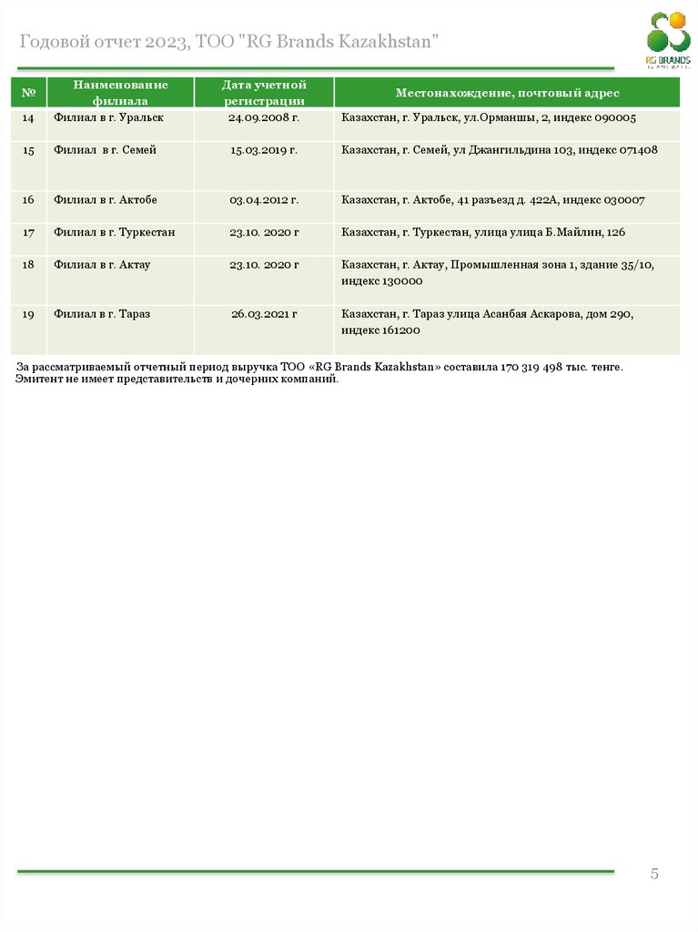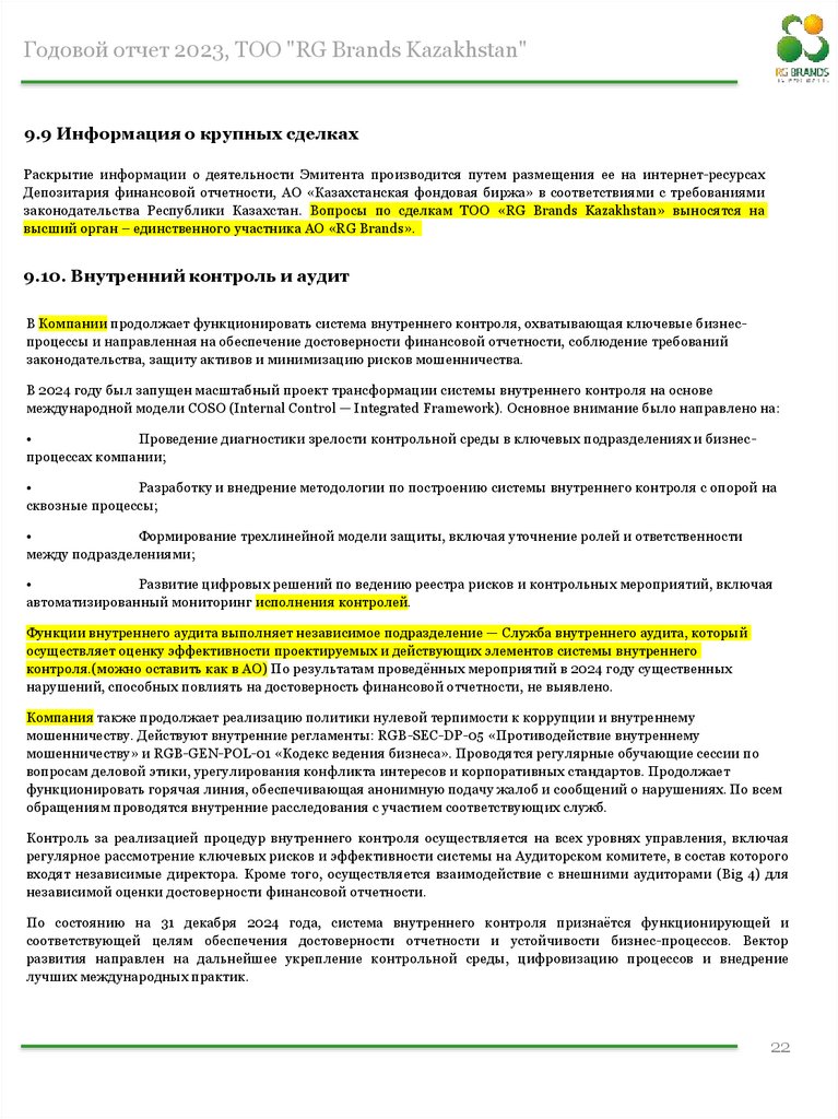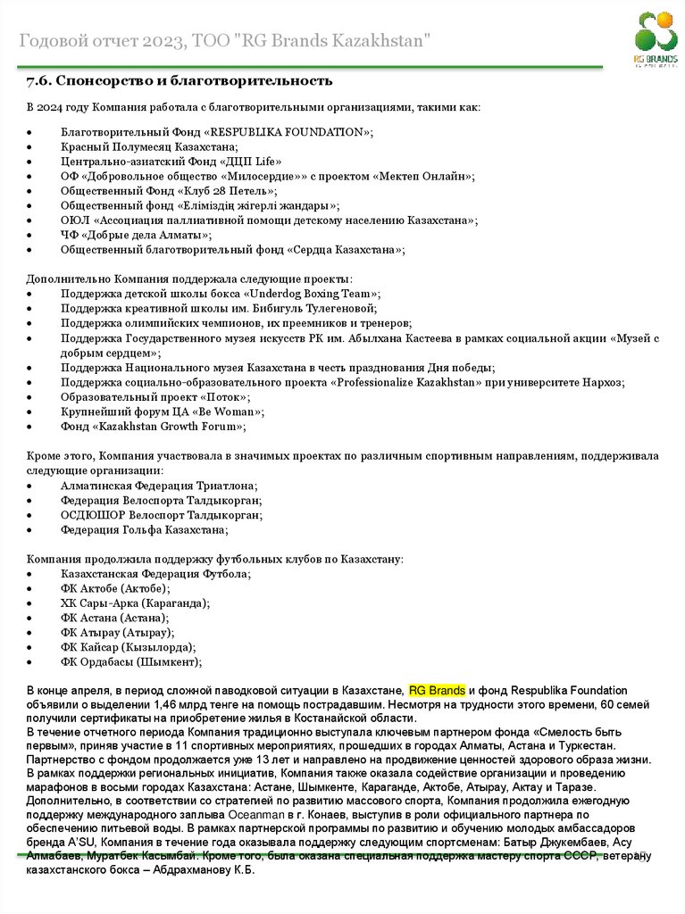 Годовой отчет 2023, ТОО "RG Brands Kazakhstan"XXII. Дополнительная информация
