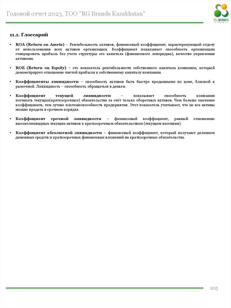 Годовой отчет 2023, ТОО "RG Brands Kazakhstan"11.1. Глоссарий