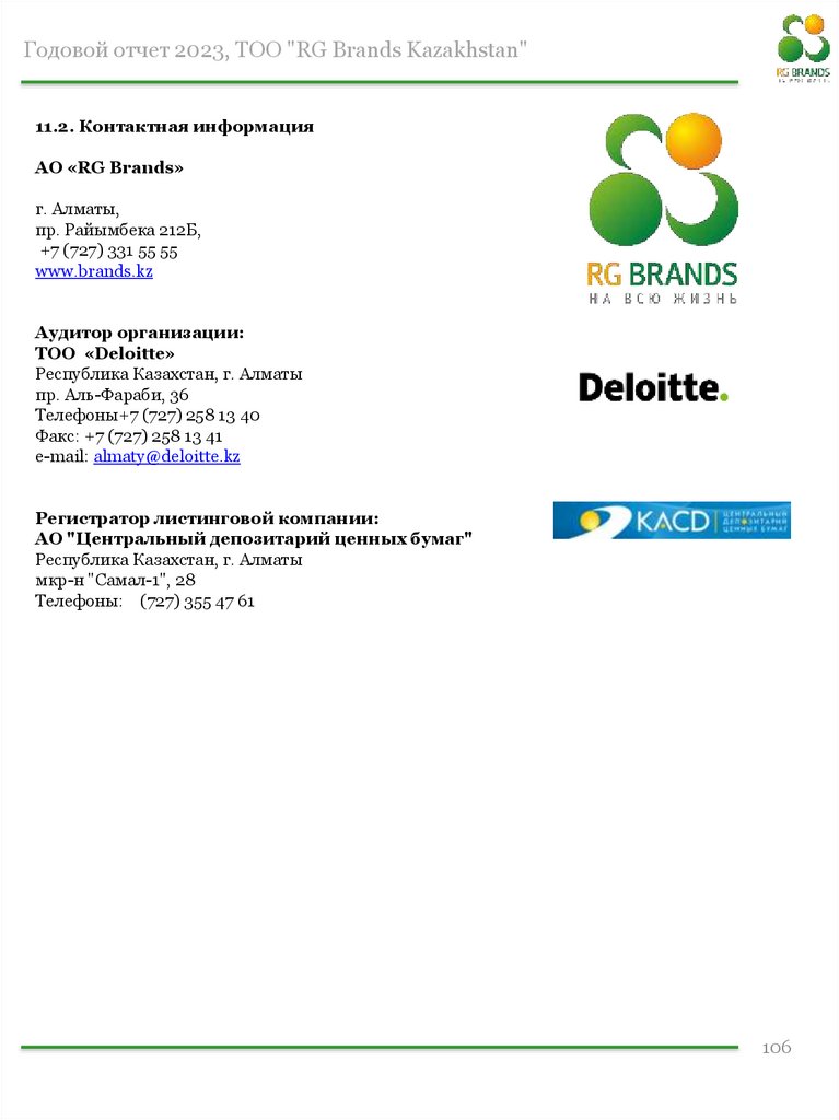 Годовой отчет 2023, ТОО "RG Brands Kazakhstan"11.2. Контактная информация