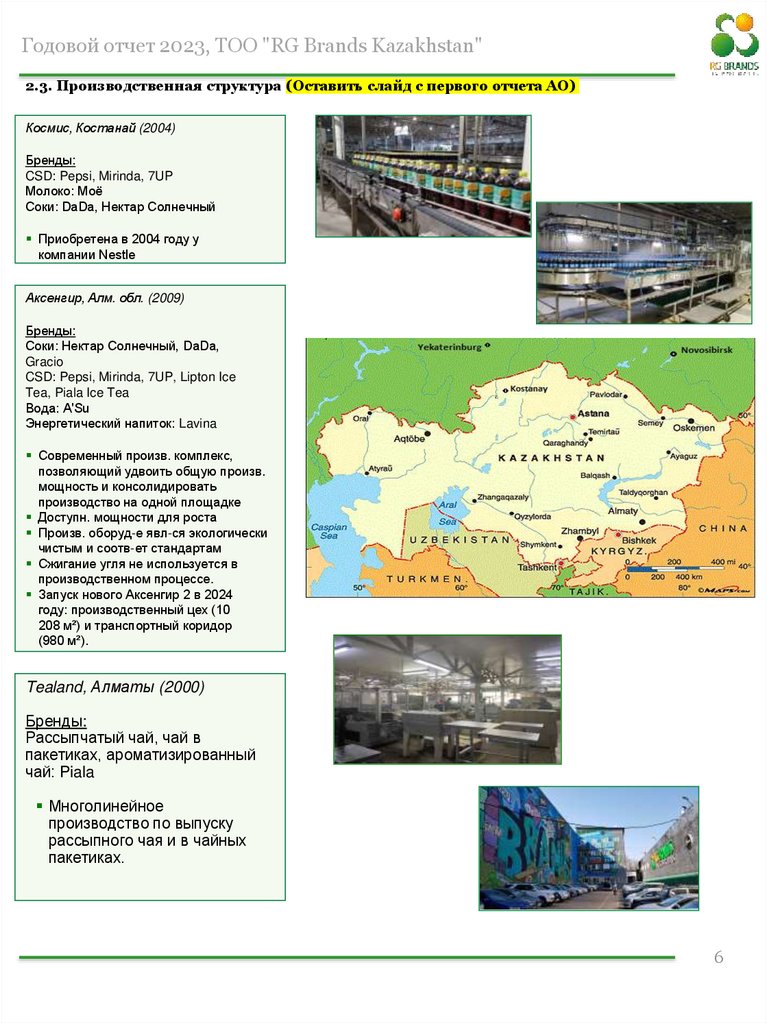 «Космис», в ТОО «RG Brands Kazakhstan», производственных мощностей компаний «Tealand», «Алматы Снэк Фуд»