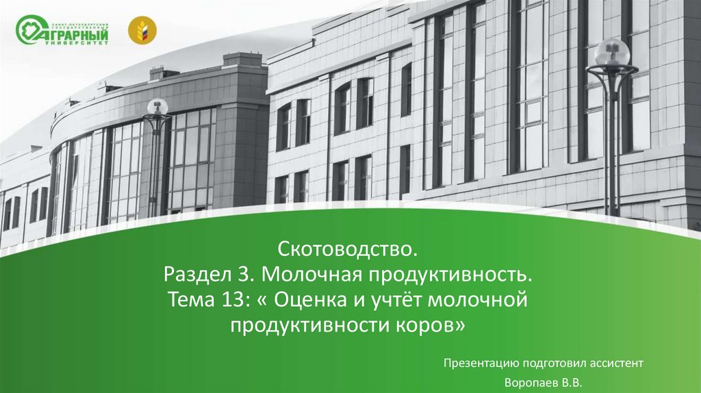 1. Скотоводство. Раздел 3. Молочная продуктивность. Тема 13: « Оценка и учтёт молочной продуктивности коров»