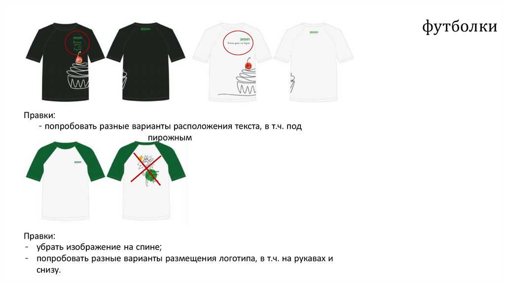 - попробовать разные варианты размещения логотипа, в т.ч. на рукавах и