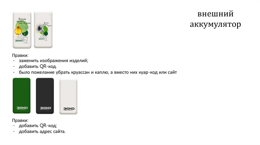 - было пожелание убрать круассан и каплю, а вместо них куар-код или сайт