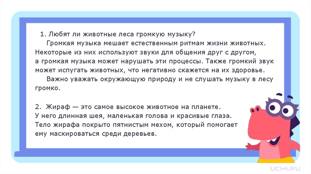1. Любят ли животные леса громкую музыку?Громкая музыка мешает естественным ритмам жизни животных.