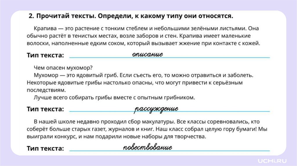 2 Определение типов текстов_ повествование, описание, рассуждение, 3 класс