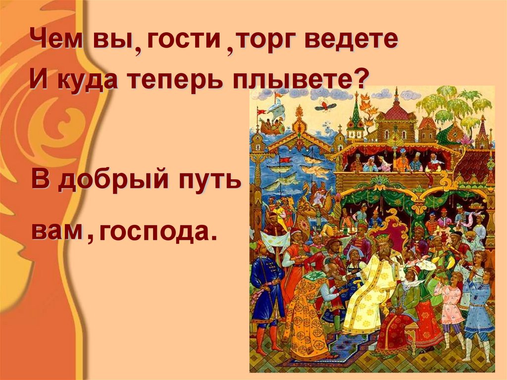 Чем вы, гости , торг ведетеИ куда теперь плывете?