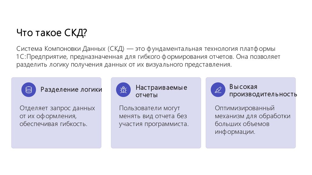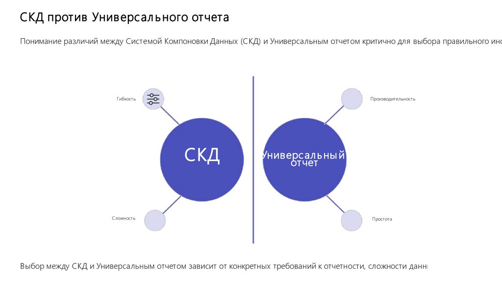 СКД против Универс ал ь ного отчетаПонимание различий между Системой Компоновки Данных (СКД) и Универсальным отчетом критично для выбора правильного инс
