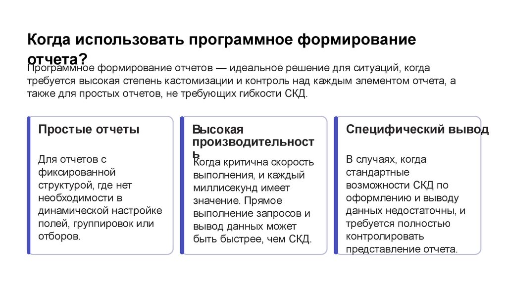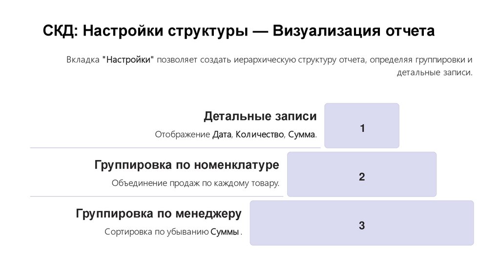 Выбор между СКД и Универсальным отчетом зависит от конкретных требований к отчетности, сложности данных и уровня детализа