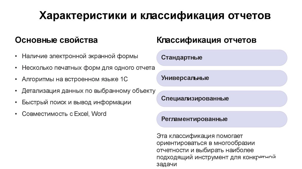 Характеристики и классификация отчетовОсновные свойства