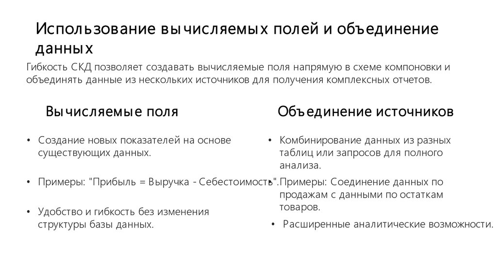 Гибкость СКД позволяет создавать вычисляемые поля напрямую в схеме компоновки и