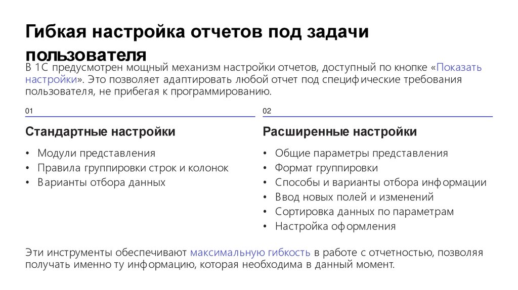 Гибкая настройка отчетов под задачипользователя