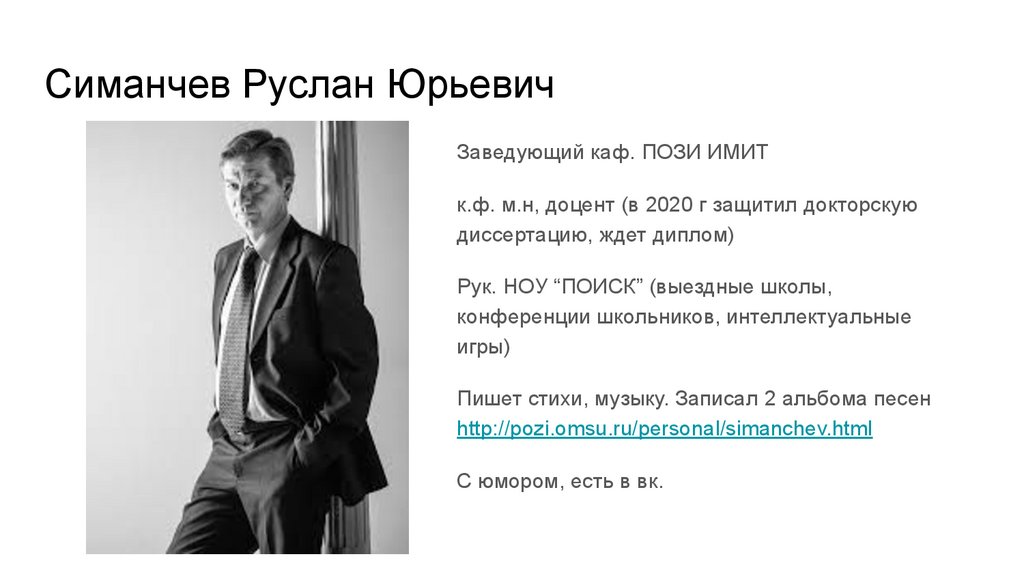Симанчев Руслан ЮрьевичЗаведующий каф. ПОЗИ ИМИТ