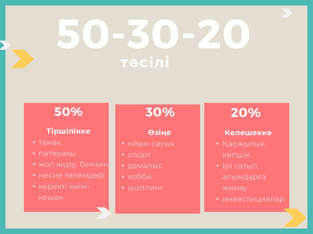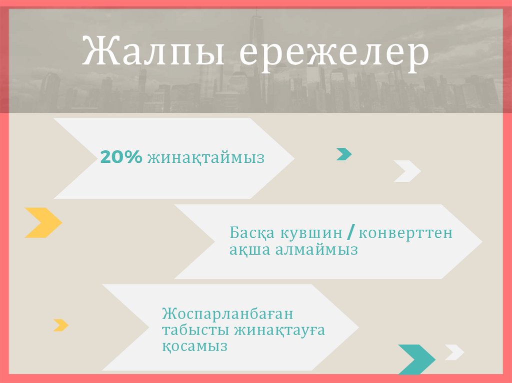 1. 20% бірден сақтаймыз2. Ай сайынғы міндетті