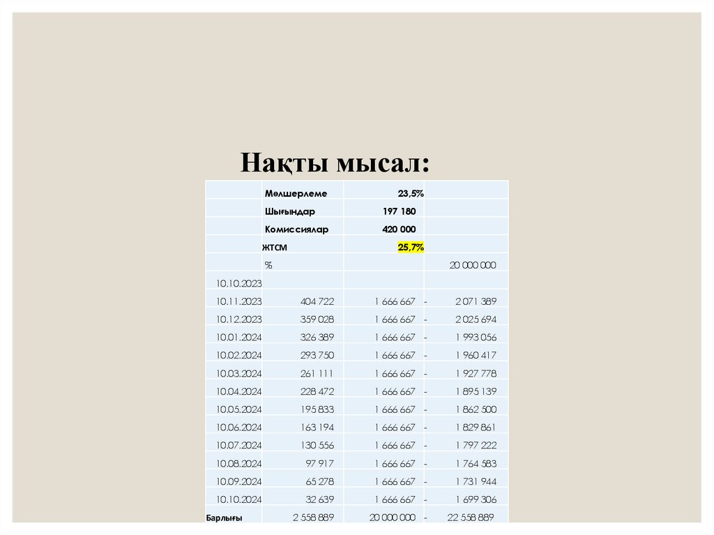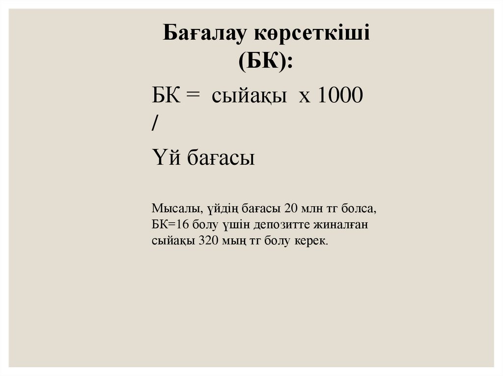 Мысалы, үйдің бағасы 20 млн тг болса,