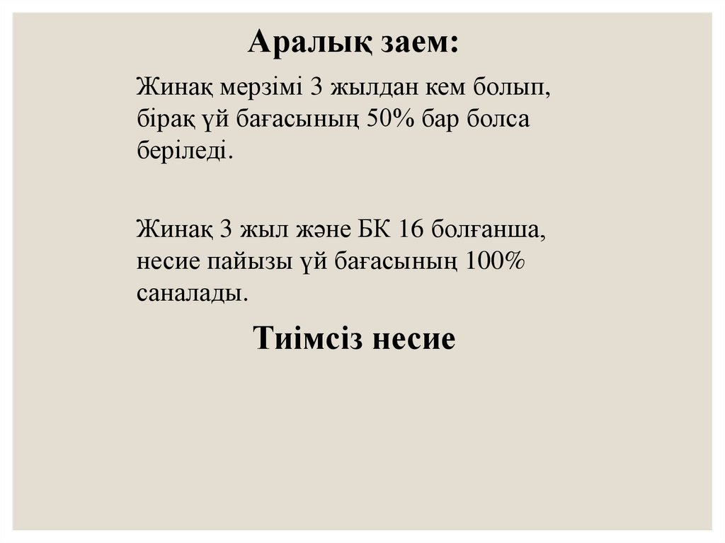 Аралық заем:Жинақ мерзімі 3 жылдан кем болып,