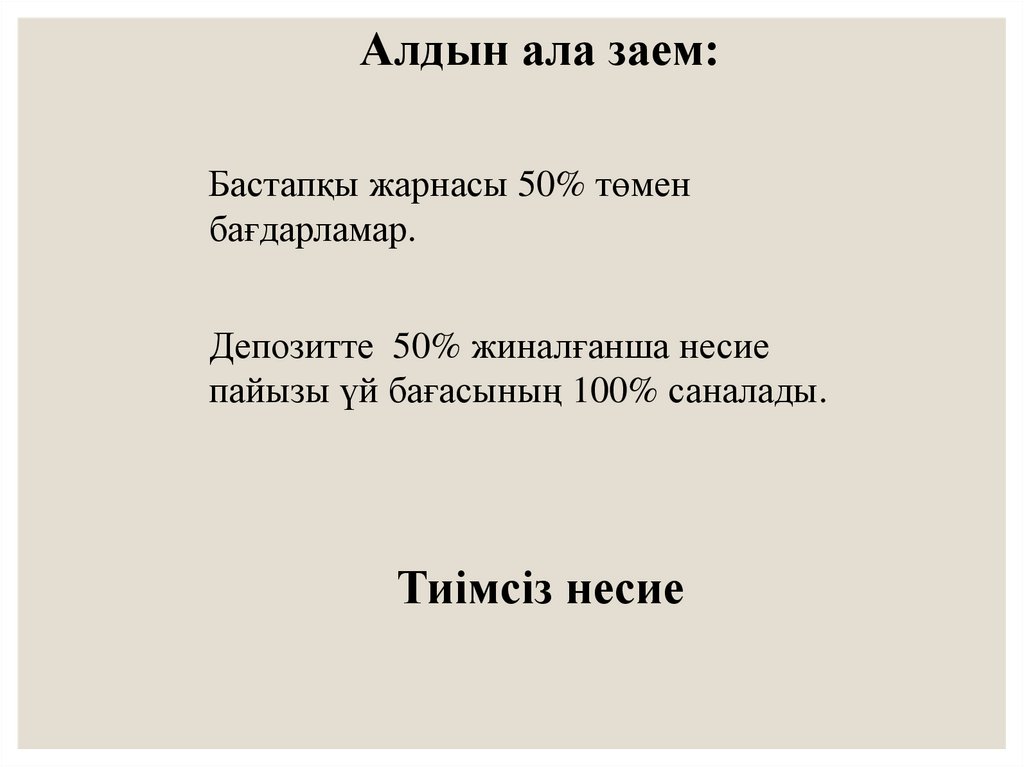 Алдын ала заем:Бастапқы жарнасы 50% төмен