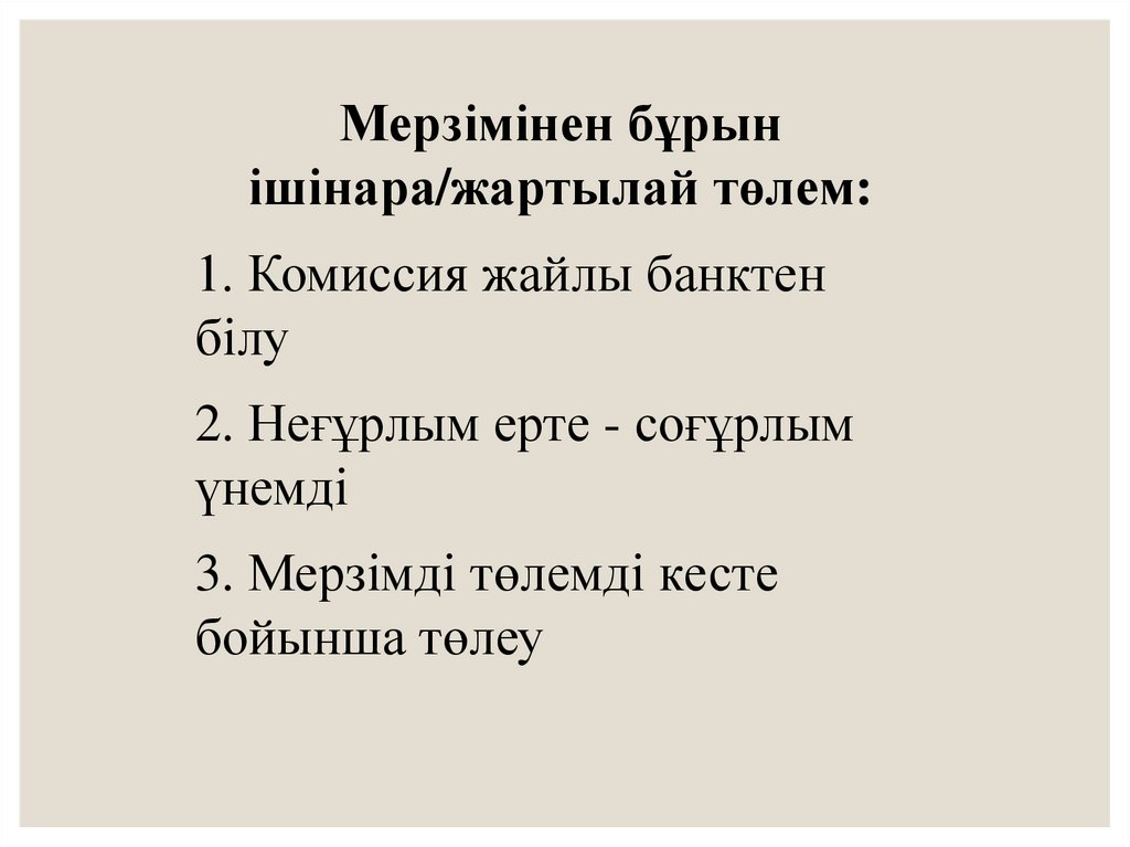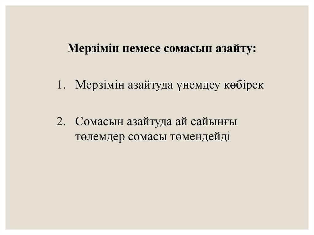 Мерзімін немесе сомасын азайту:1. Мерзімін азайтуда үнемдеу көбірек