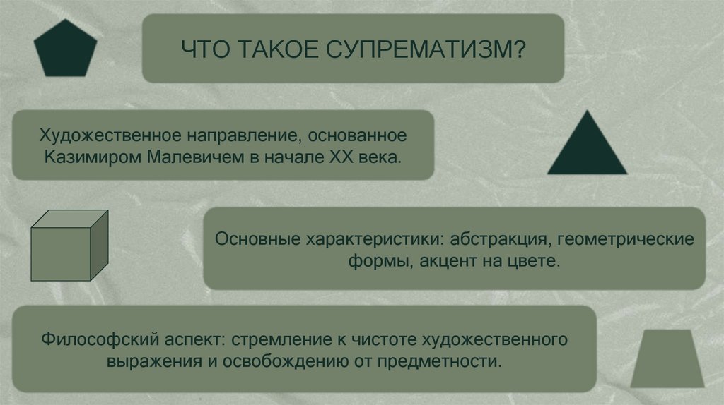 ЧТО ТАКОЕ СУПРЕМАТИЗМ?Художественное направление, основанное