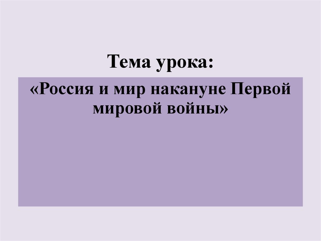 «Россия и мир накануне Первоймировой войны»