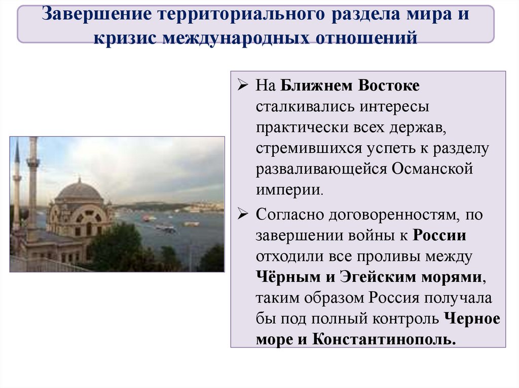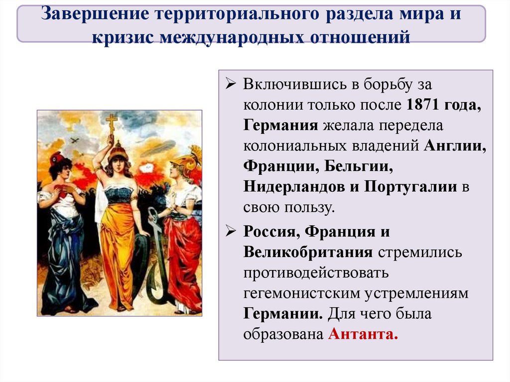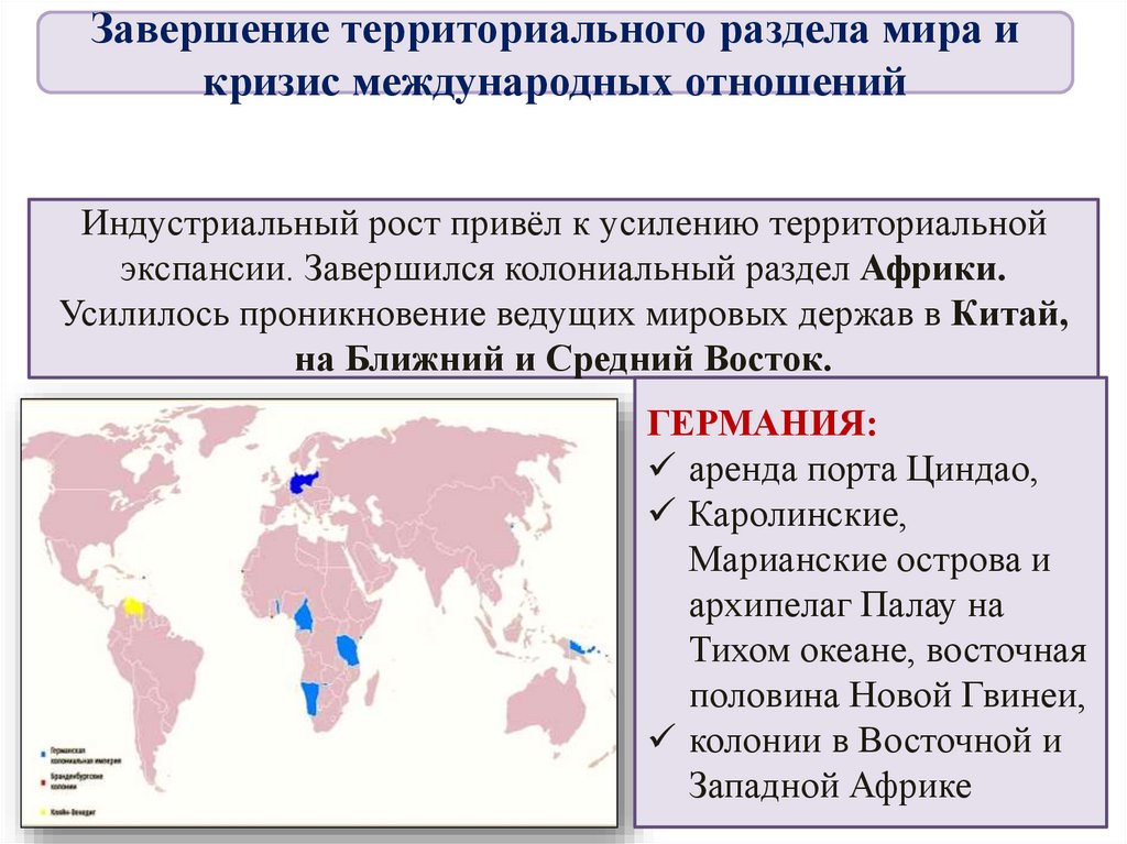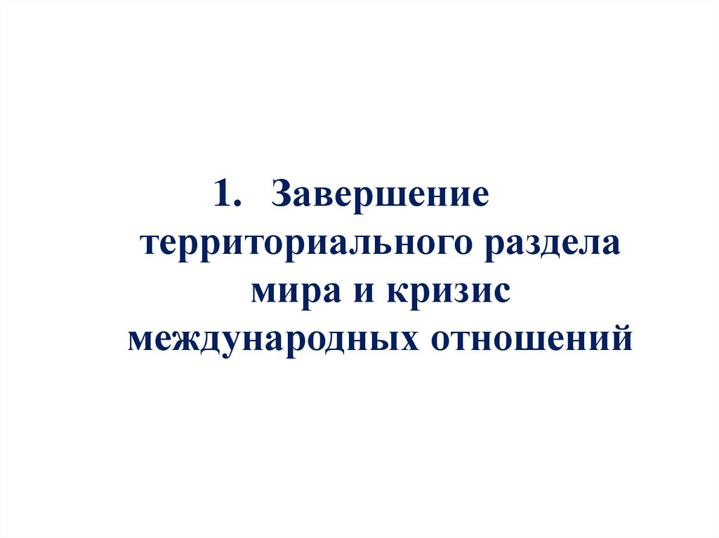 Завершение территориального раздела мира икризис международных отношений
