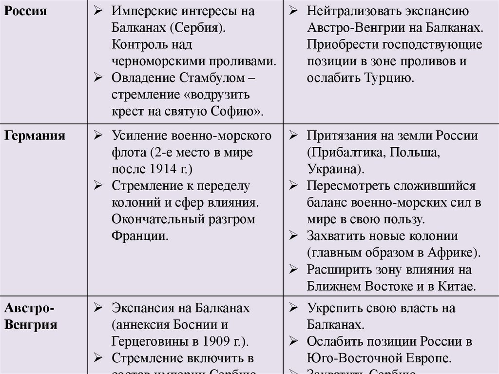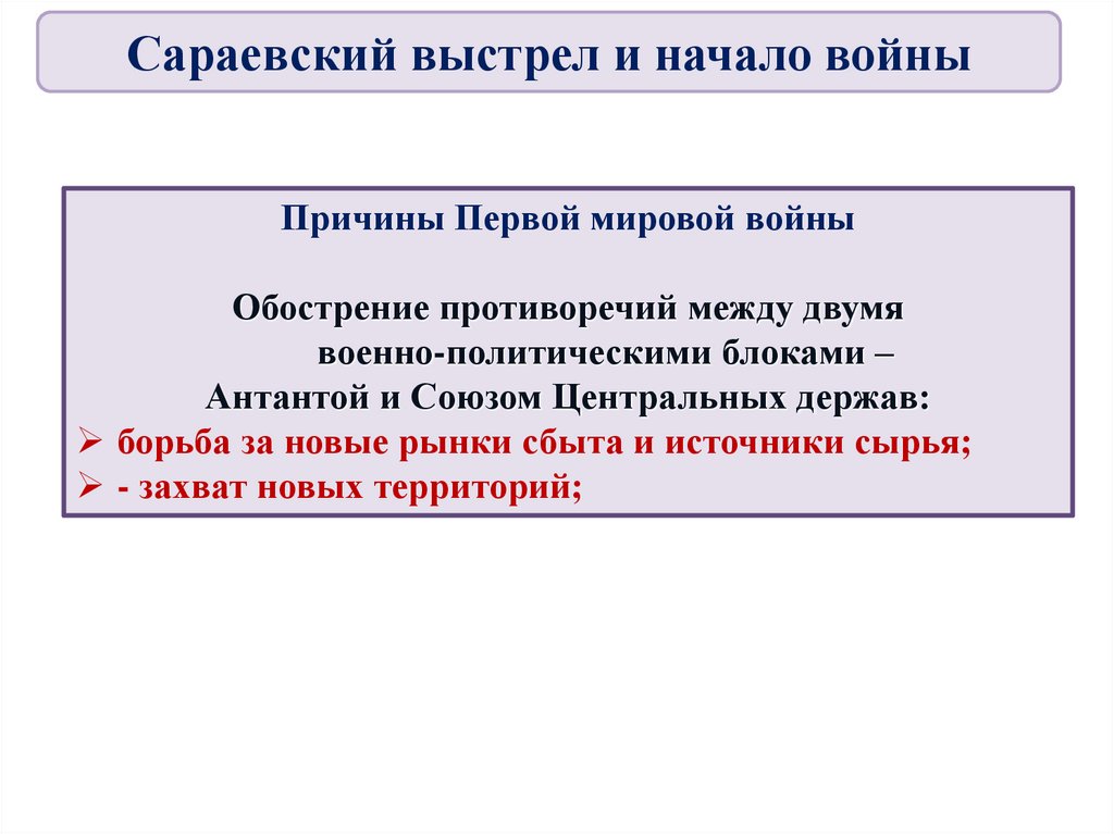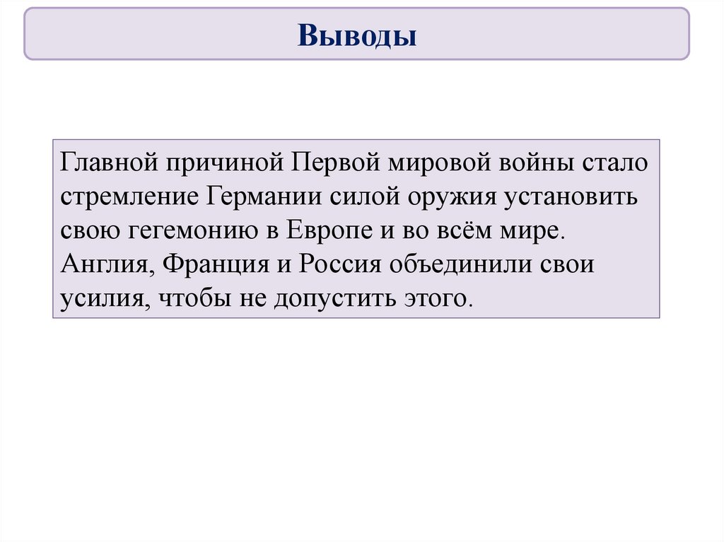 ВыводыГлавной причиной Первой мировой войны стало