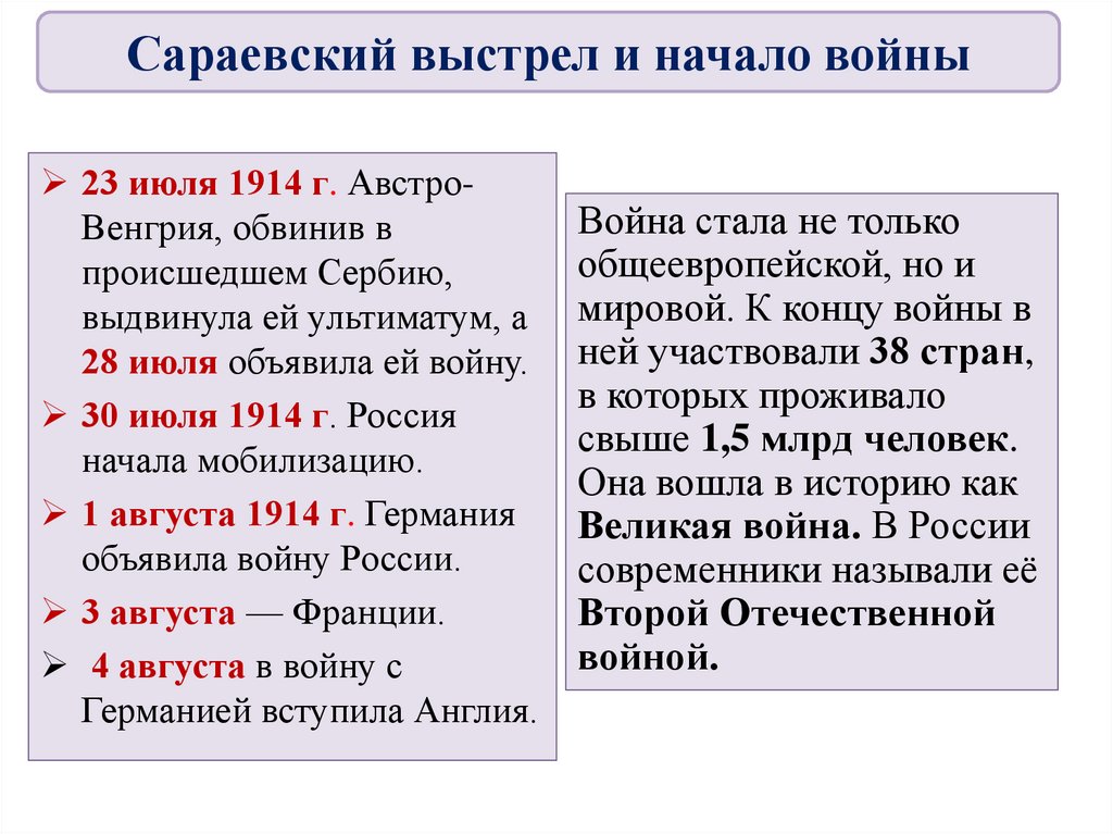 Сараевский выстрел и начало войныУчастники войны