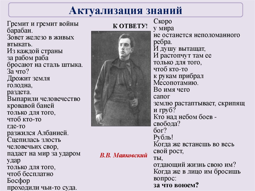 Актуализация знанийГремит и гремит войны