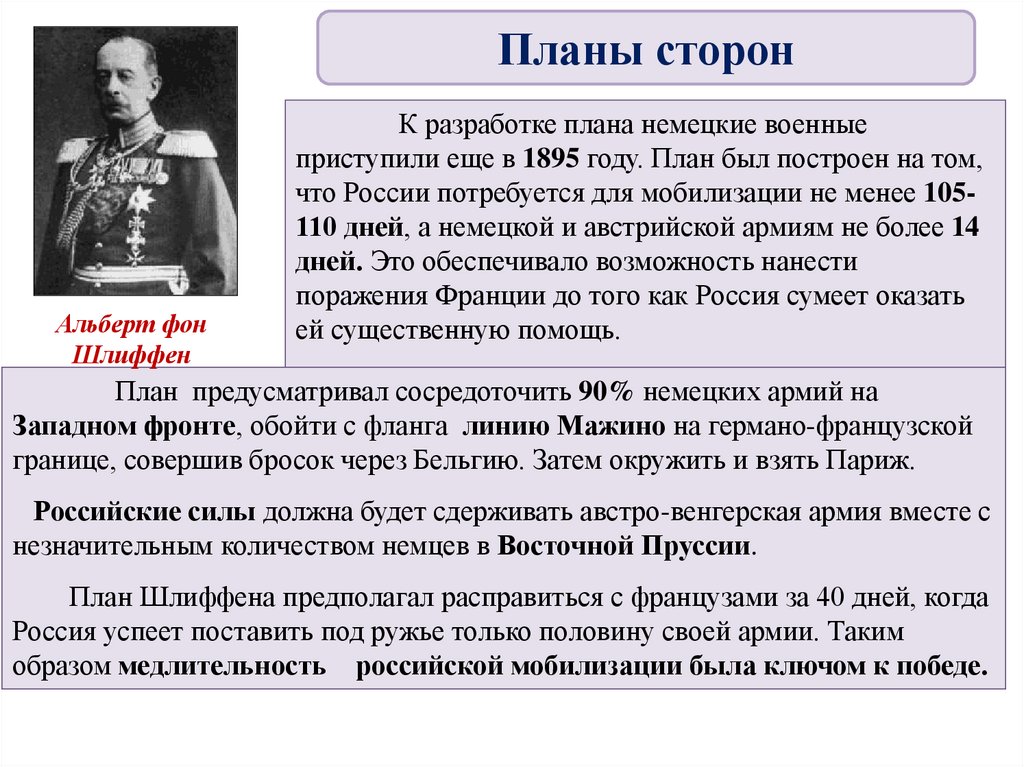 Планы сторонГерманский план ведения войны