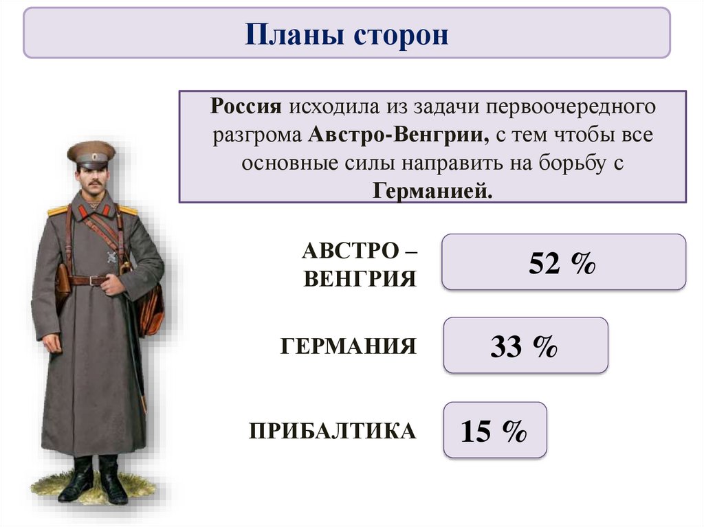 Планы сторонРоссия исходила из задачи первоочередного