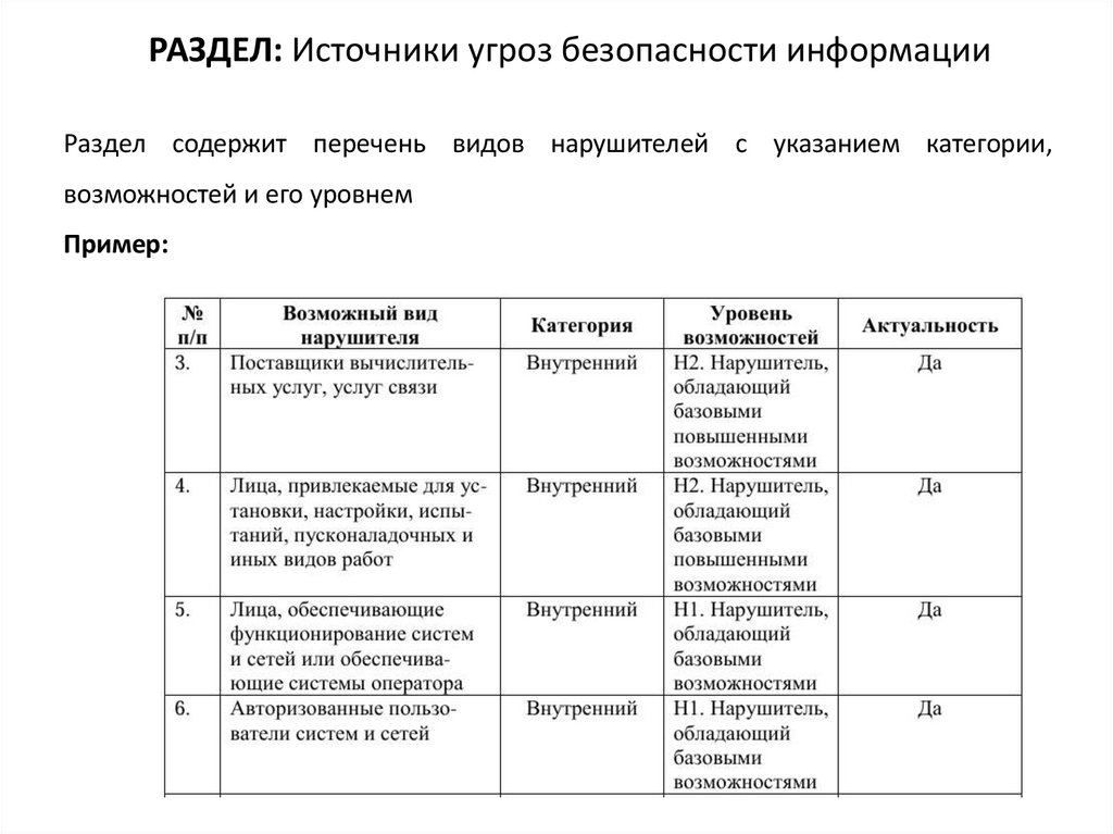 РАЗДЕЛ: Актуальные угрозы безопасности информацииВ ходе оценки угроз безопасности информации определяются возможные