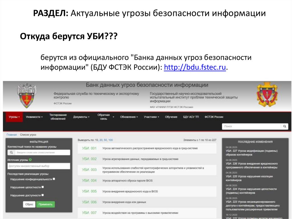 РАЗДЕЛ: Актуальные угрозы безопасности информацииОткуда берутся УБИ???