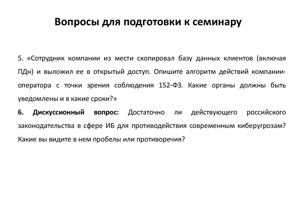Вопросы для подготовки к семинару5. «Сотрудник компании из мести скопировал базу данных клиентов (включая