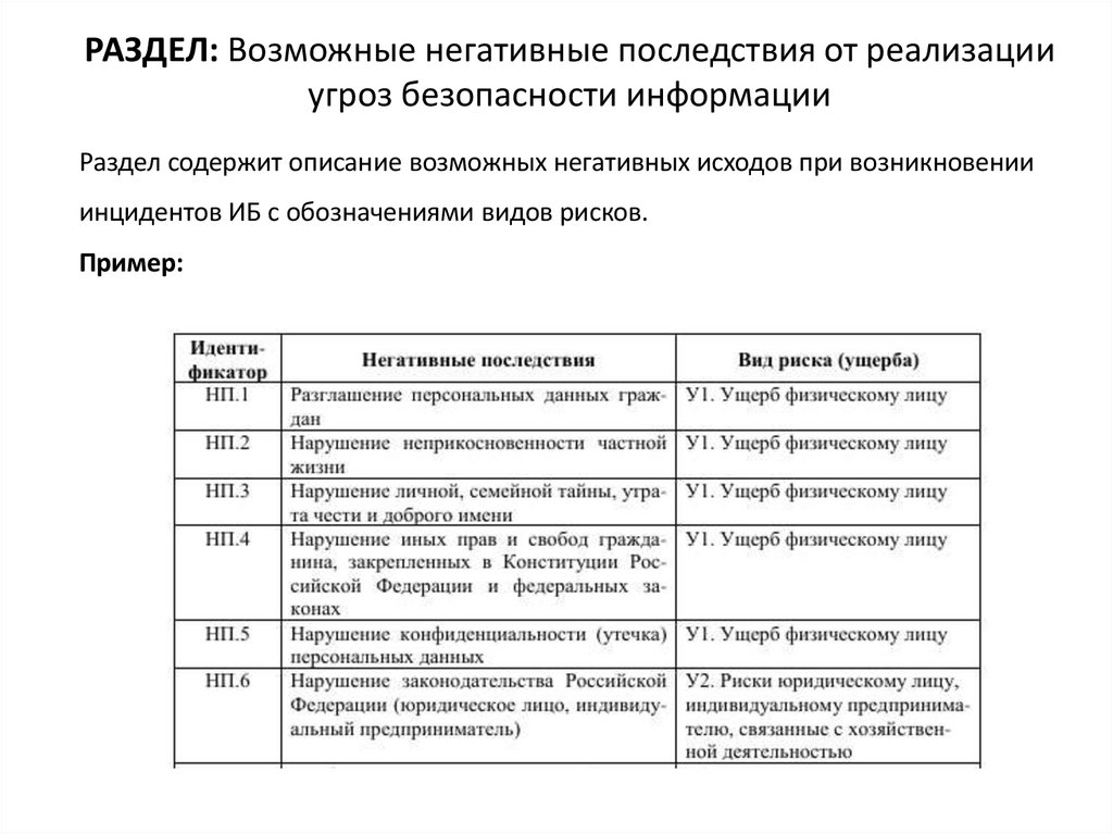РАЗДЕЛ: Возможные негативные последствия от реализацииугроз безопасности информации