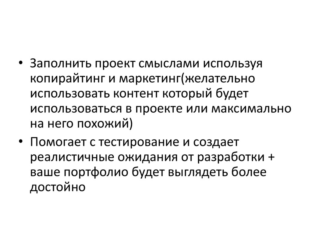 • Заполнить проект смыслами используякопирайтинг и маркетинг(желательно