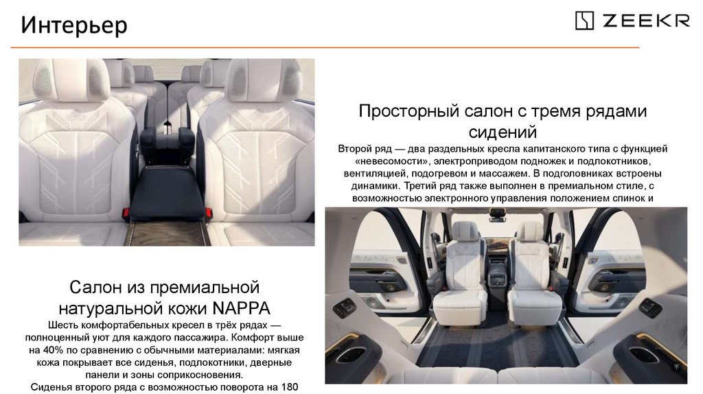 Второй ряд — два раздельных кресла капитанского типа с функцией