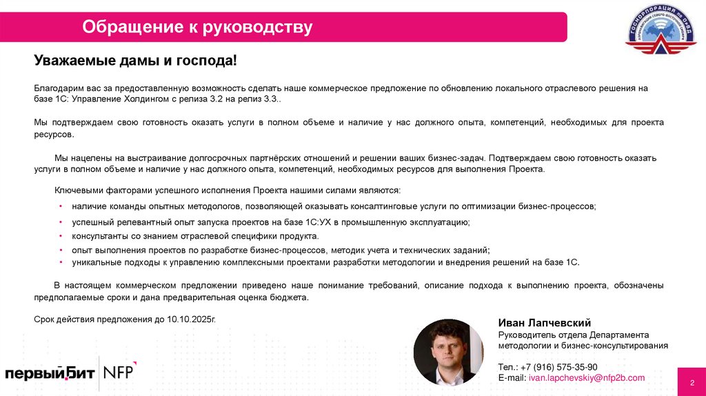 Благодарим вас за предоставленную возможность сделать наше коммерческое предложение по обновлению локального отраслевого решения на