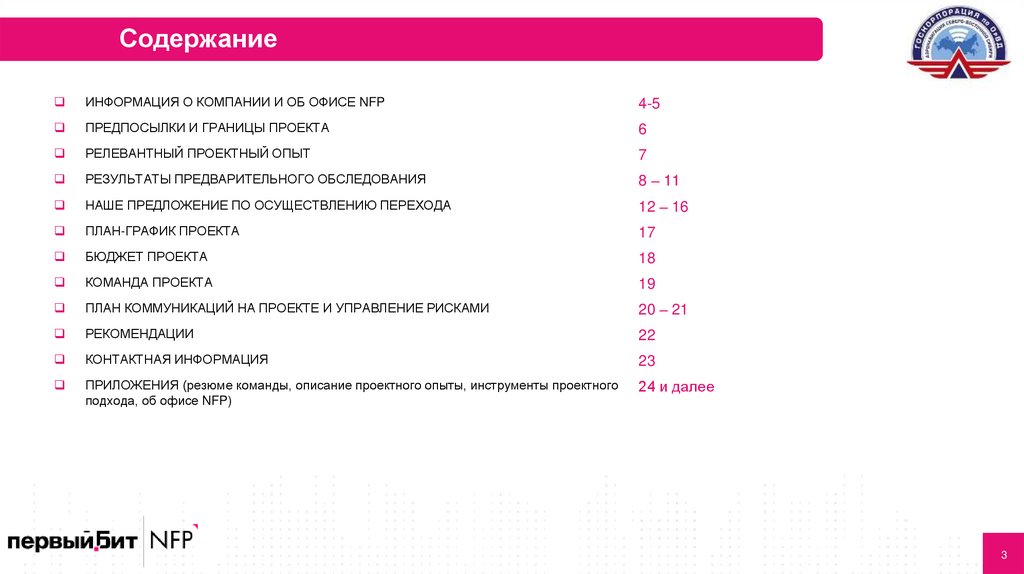 СодержаниеИНФОРМАЦИЯ О КОМПАНИИ И ОБ ОФИСЕ NFP
