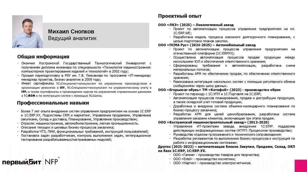 Проектный офис НФП компании ПервыйБитОпыт автоматизации на платформах