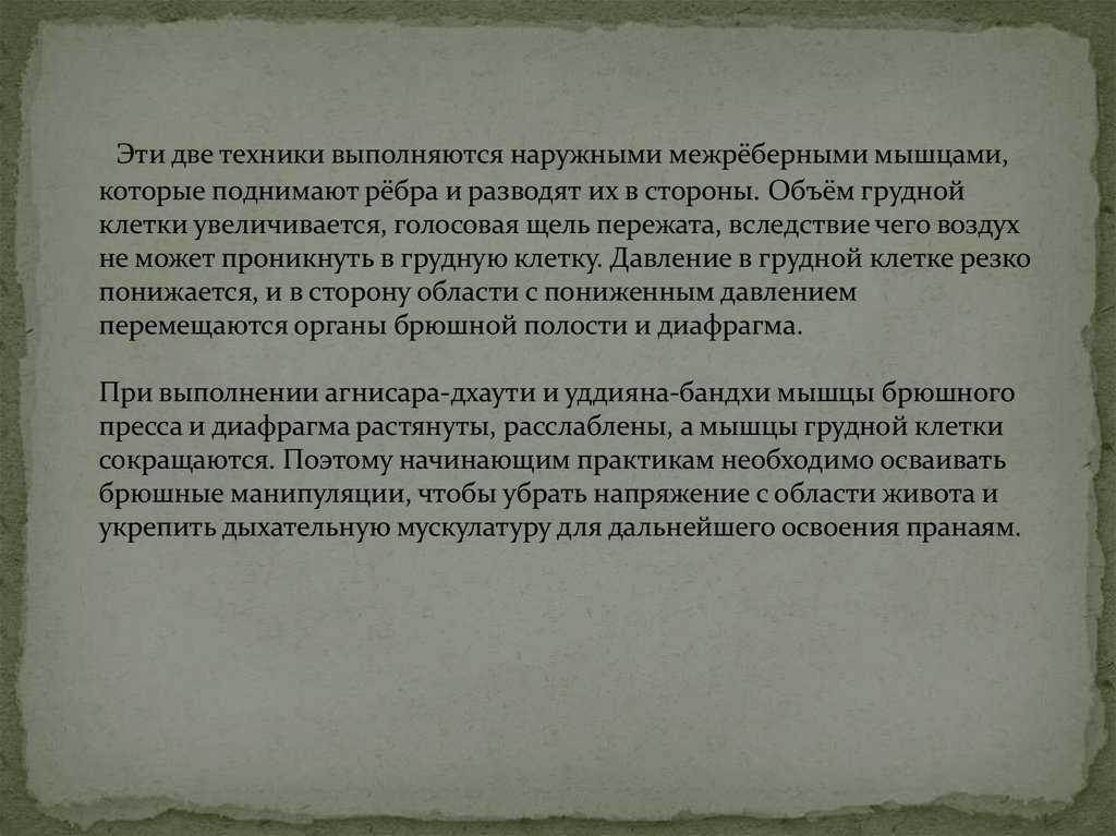 Часто в дыхательной мускулатуре имеются мышечные блоки, например,«каменный живот» от постоянных стрессов, что ограничивает работу некоторых