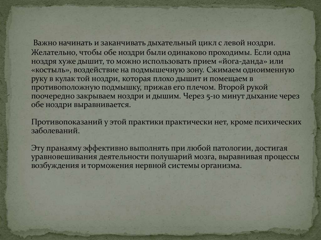 правую ноздрю, а выдох – через левую. То есть, основным критерием
