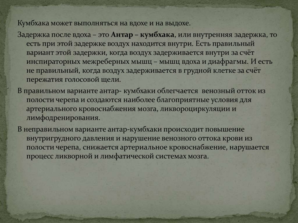 В правильном варианте антар- кумбхаки облегчается венозный отток из