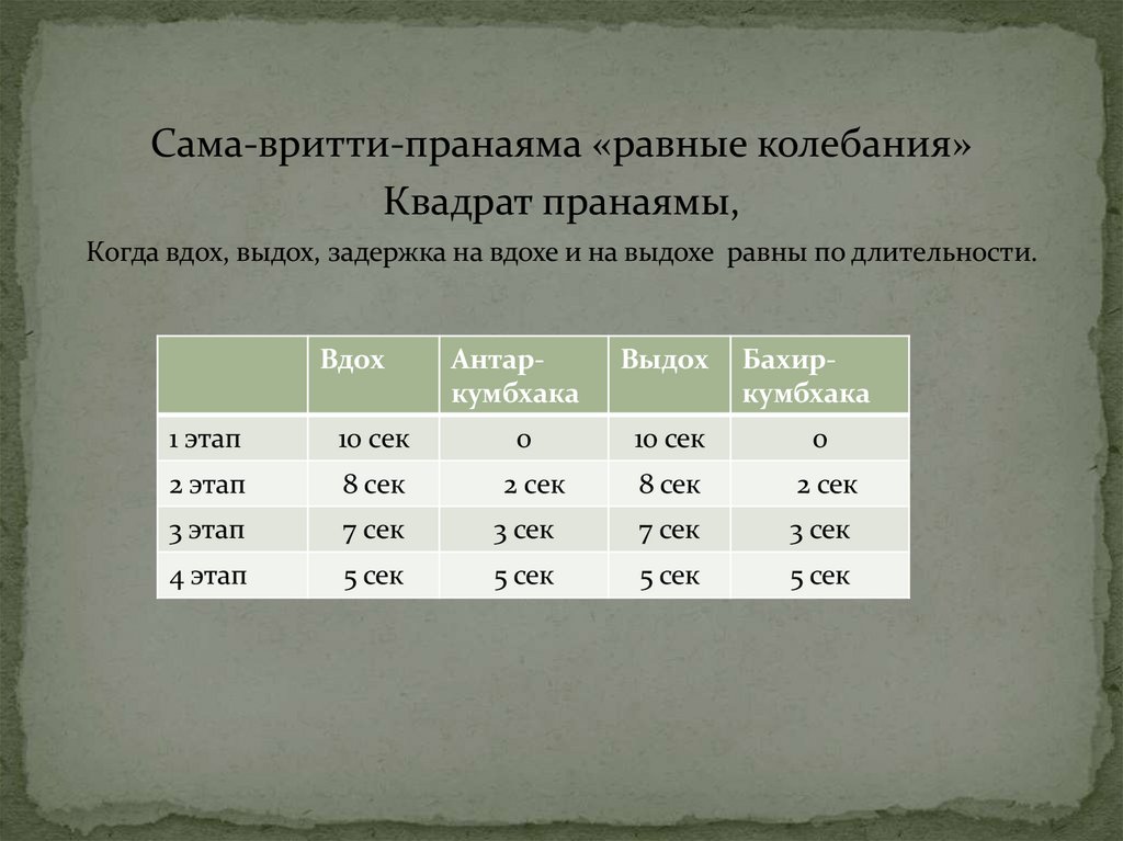 Сама-вритти-пранаяма «равные колебания»Квадрат пранаямы,