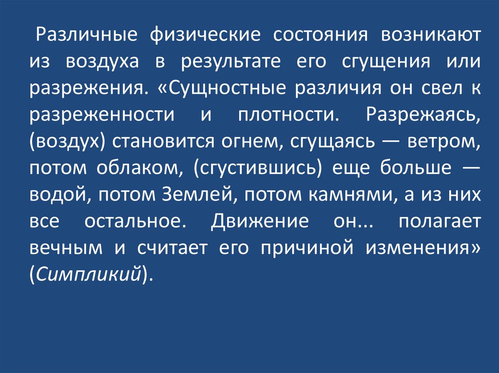 бесконечное как "воздух", "воду" или какойнибудь другой определенный (элемент); что
