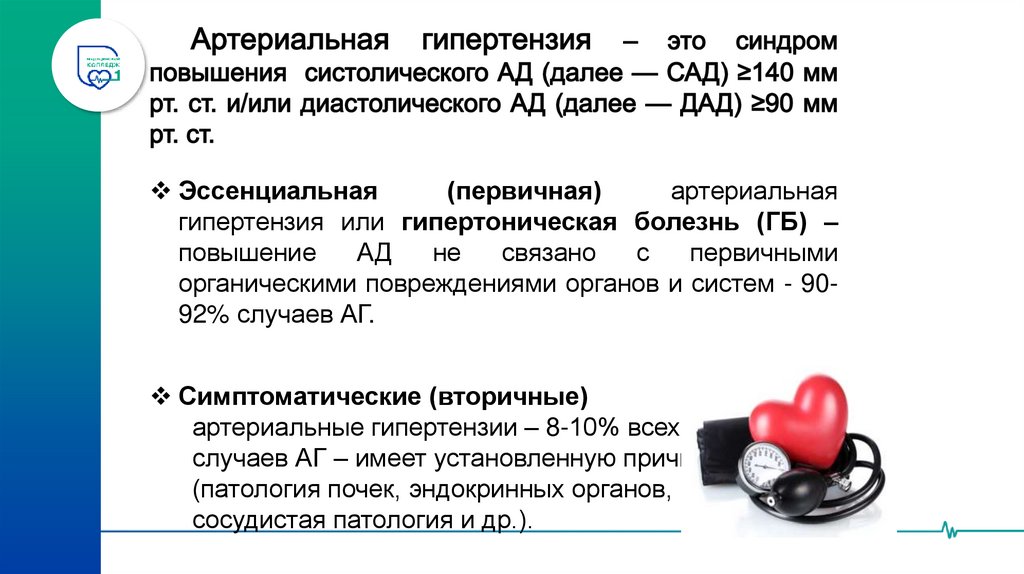 органическими повреждениями органов и систем - 9092% случаев АГ.