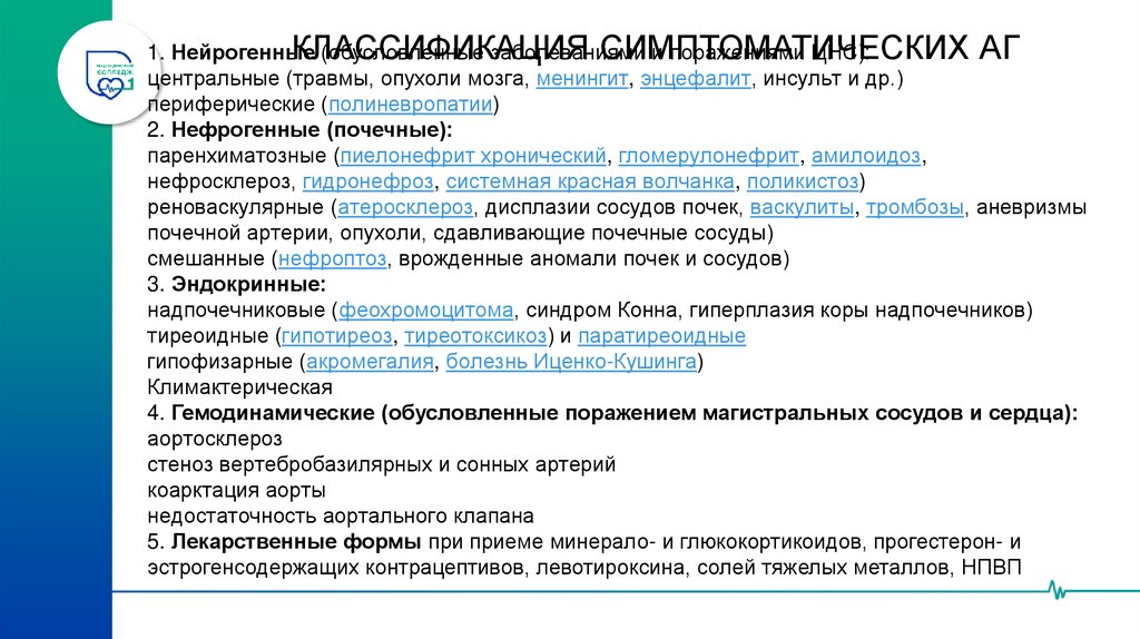 75. КЛАССИФИКАЦИЯ СИМПТОМАТИЧЕСКИХ АГ