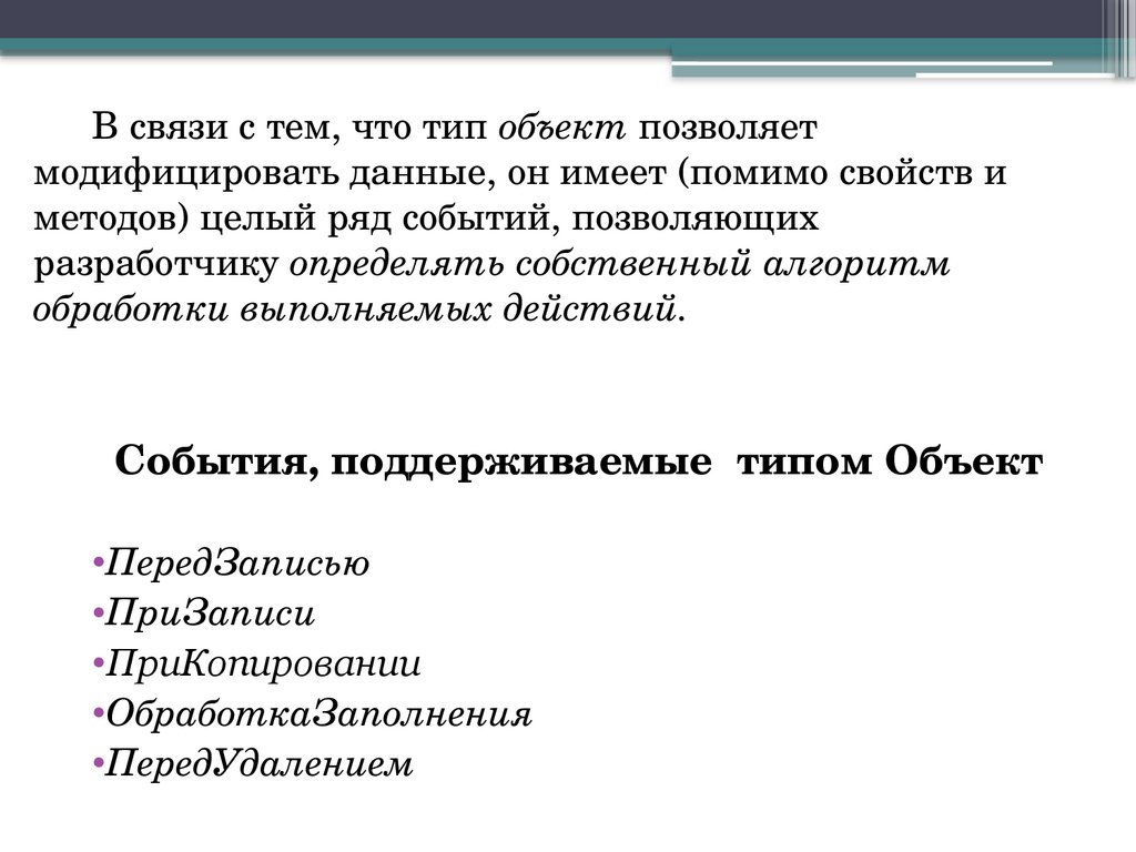 Для работы с объектными данными вовстроенном языке существует два основных типа: