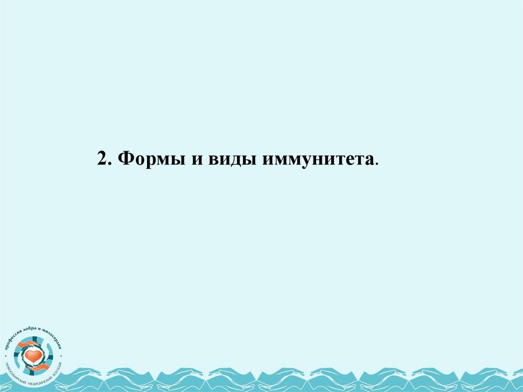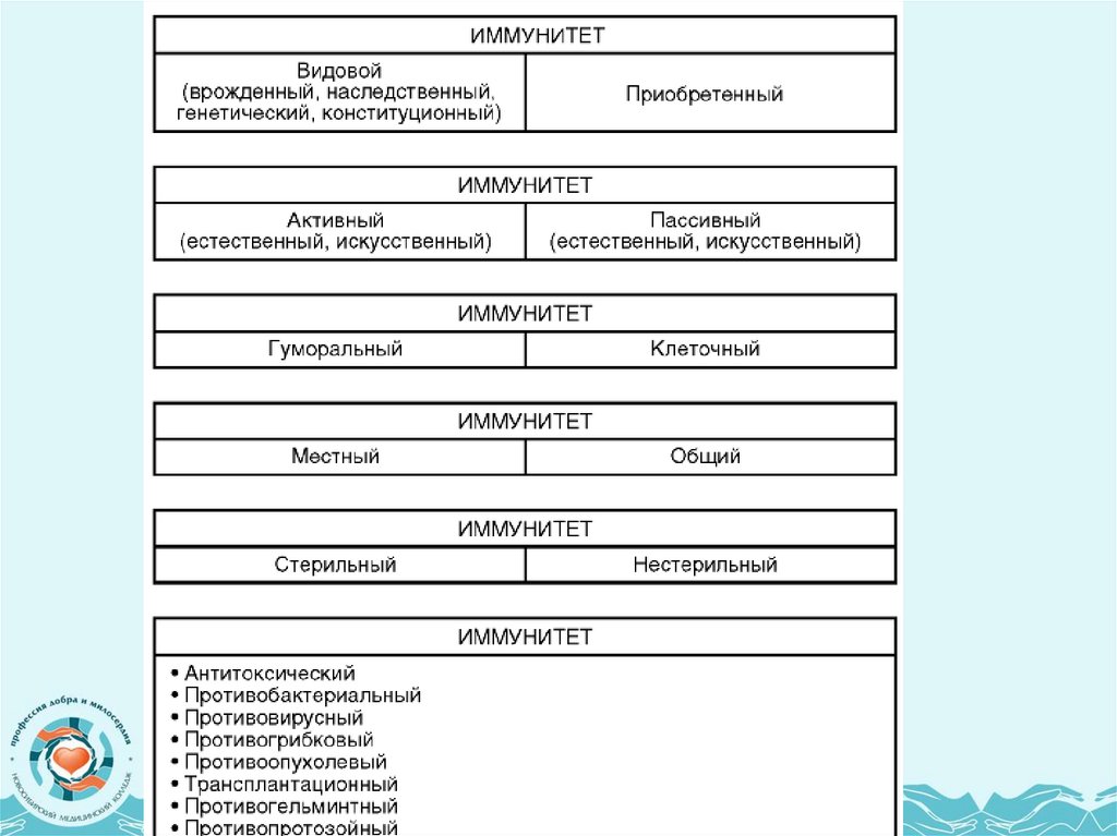 2. Формы и виды иммунитета.11. Существуют различные классификации видов и форм иммунитета. Наиболее простая классификация: