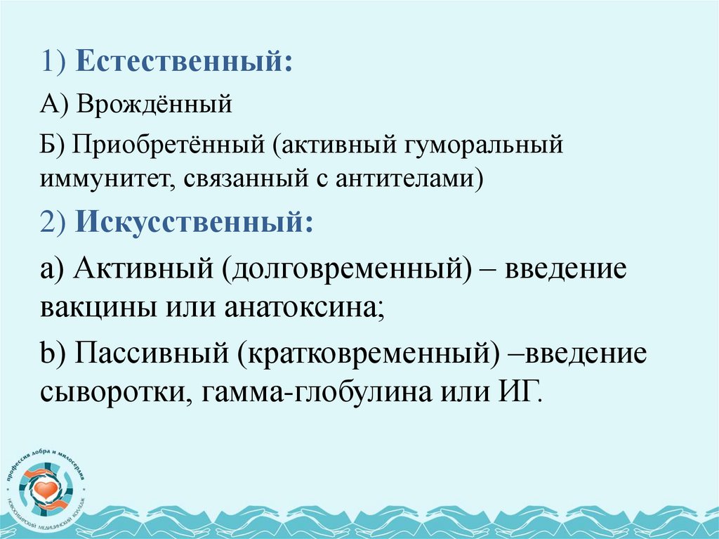 1) Естественный:А) Врождённый