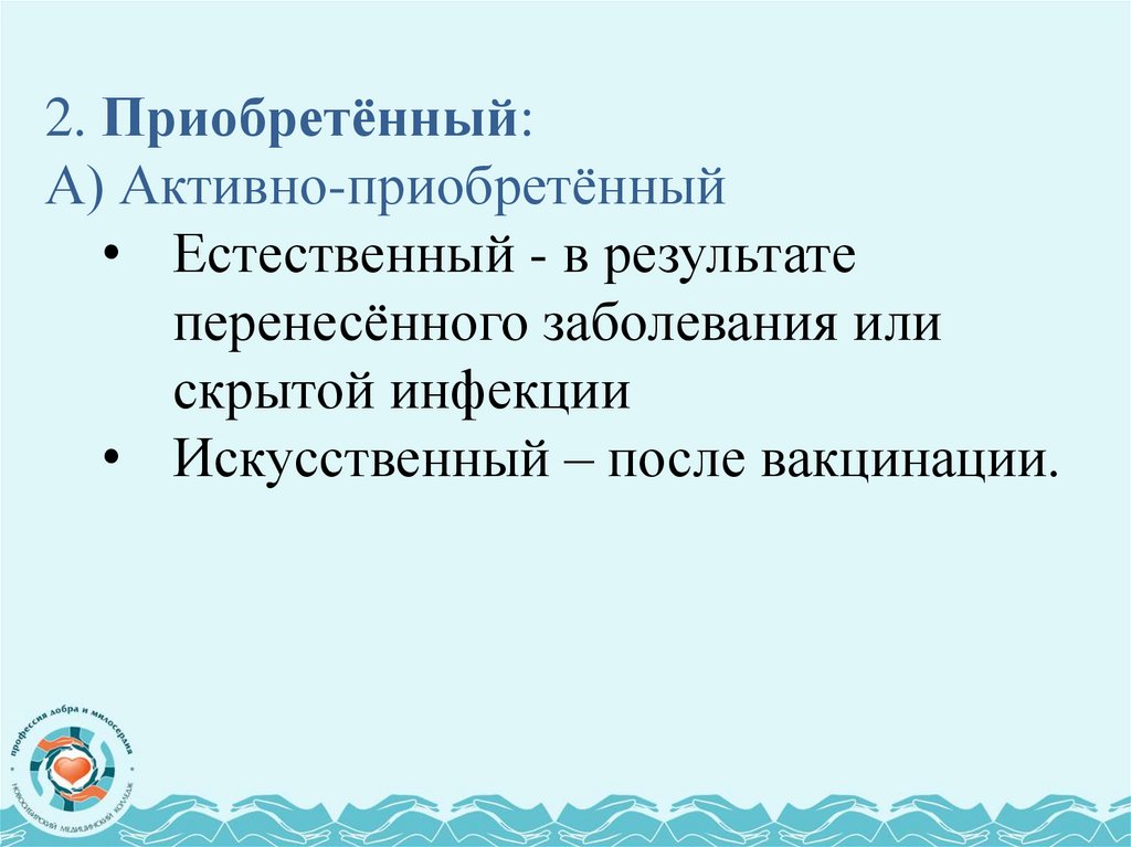 Б) Приобретённый (активный гуморальный